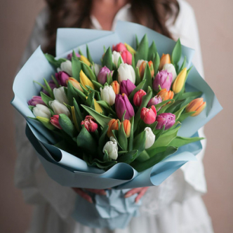 - разные цвета в одном букете